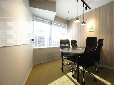 完全個室のミーティングルーム(Wi-Fiあり)があり、ご利用人数は最大4名です。