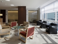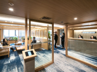 エキスパートオフィス横浜は、横浜の海をイメージしたオフィスデザインが特徴です。ラウンジは、人・船・貿易が交わる様子を格子で表現し、じゅうたんは、海の波を演出しました。横浜市営地下鉄「横浜」駅徒歩1分の好立地で、交通利便性は抜群です。ビルは耐…